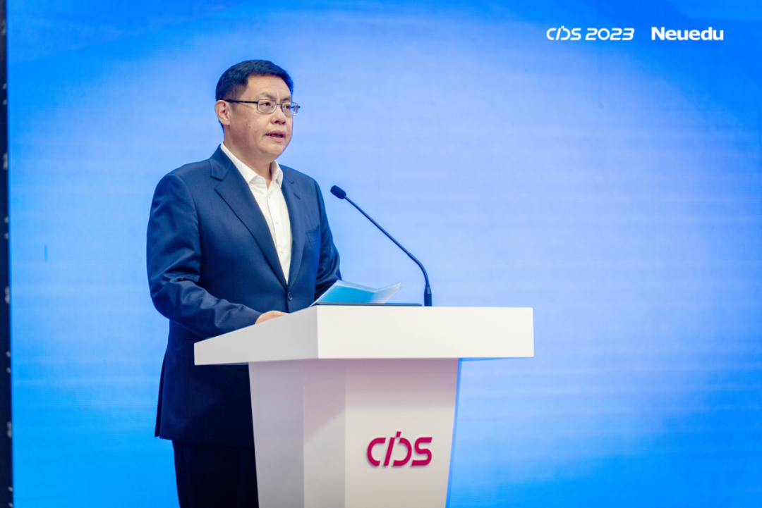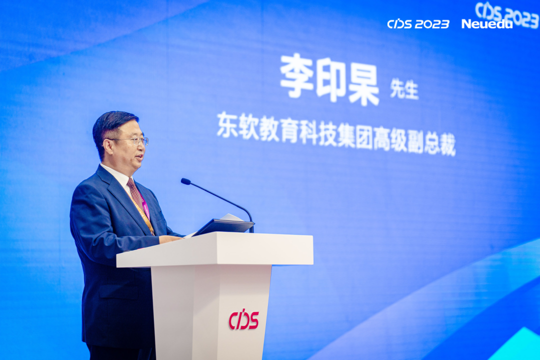 球盟会(中国)教育科技集团执行董事、CEO、总裁温涛教授作题为《应用型高校数字化转型的探索与实践》主旨报告。温涛教授认为,数字化浪潮催生了大量的数字化应用型与技术技能型人才需求,迫切需要以数字技术持续改进和构筑应用型高校高质量开展的新范式。面对应用型高校数字化转型的现存困境与挑战,需要进一步明晰数字化转型的概念内涵、基本原则,从“学校、专业、课程、教师、评价”五个层面构建应用型高校数字化转型的框架体系。