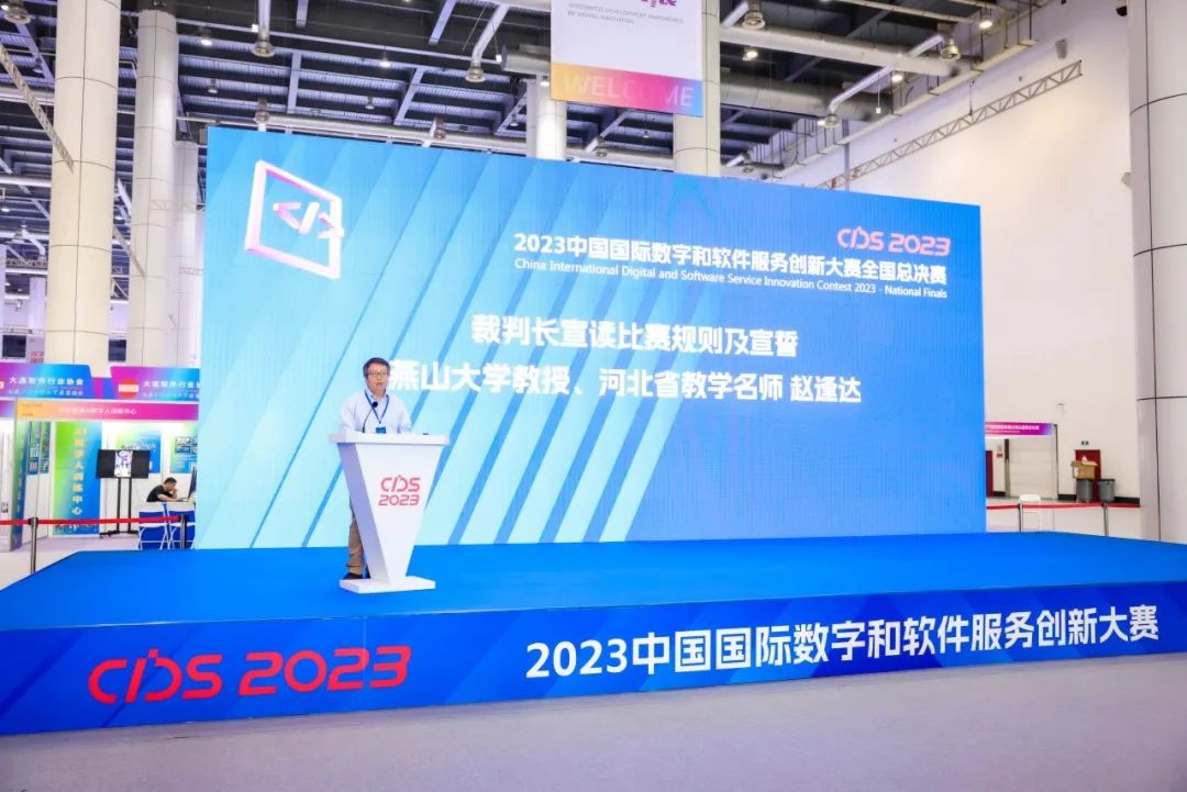 裁判代表、裁判长燕山大学教授、河北省教学名师赵逢达老师上台宣读比赛规则并做出对大赛公正性的坚定承诺。