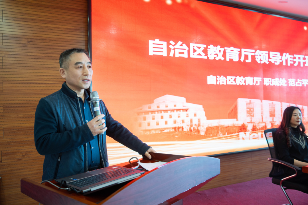 宁夏回族自治区教育厅职成处二级调研员范占平为大家做动员讲话。范处长就本次培训班的目的、意义做了动员,也对参训教师提出了具体的要求,希望大家相互督促、相互成就、共同进步。