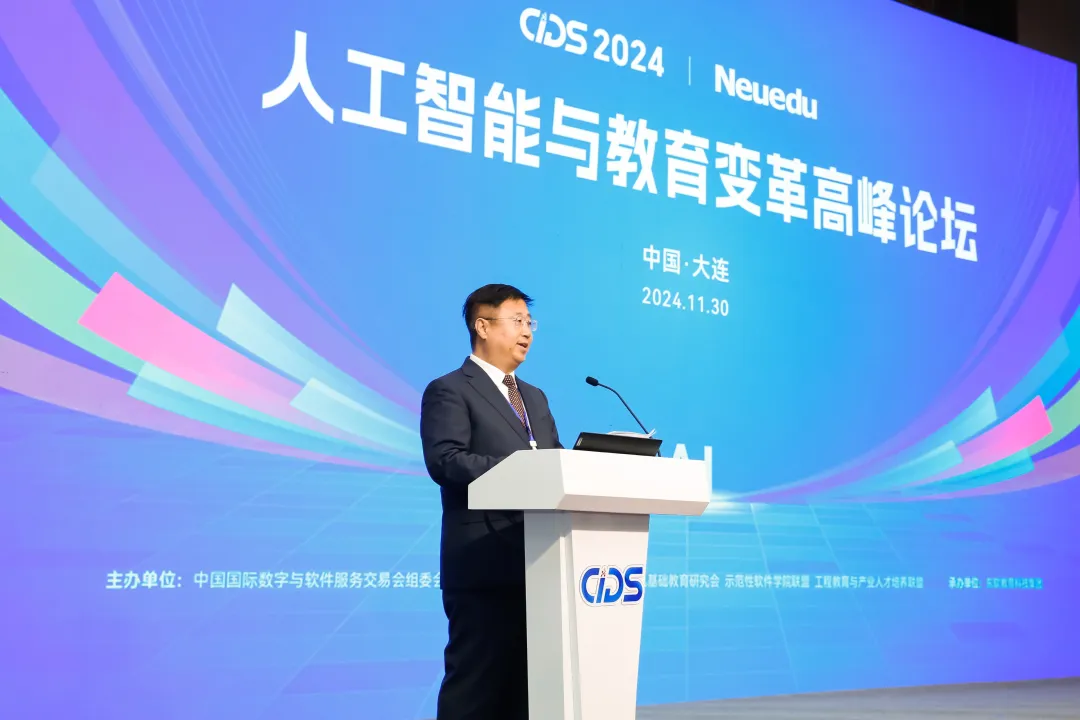 11月30日上午,在2024中国国际数字和软件服务交易会期间,由数交会组委会主办,全国高等院校计算机基础教育研究会、示范性软件学院联盟、工程教育与产业人才培养联盟协办,球盟会(中国)教育科技集团承办的“人工智能与教育变革高峰论坛”在大连世界博览广场1号厅圆满举办。现场来自全国各地的专家、学者、政府领导、院校及行业企业代表、媒体等400余位嘉宾齐聚一堂,以专家报告和圆桌对话的形式共议人工智能对教育领域的深度影响,探索符合人工智能时代要求的教育模式。