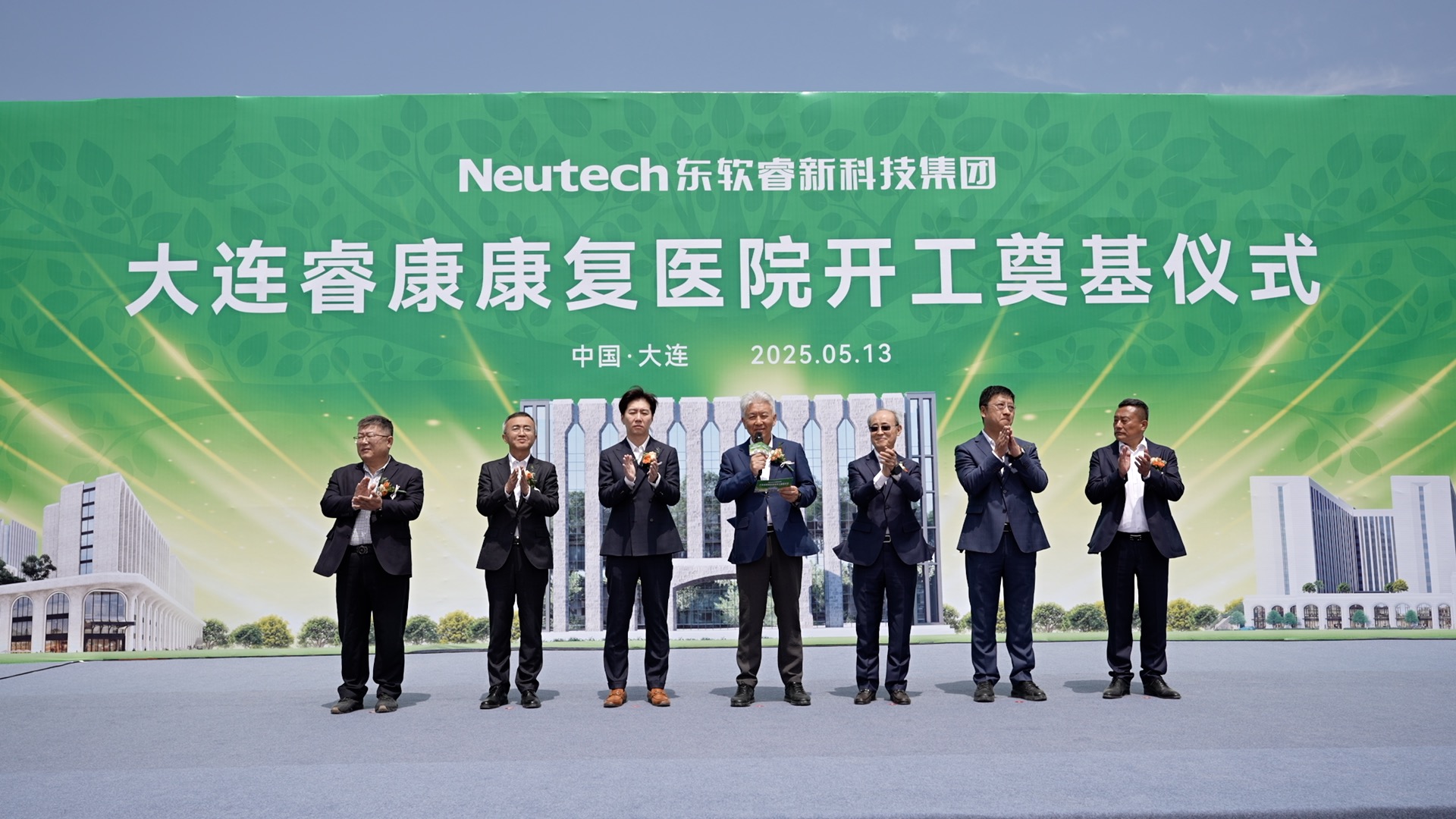 刘积仁董事长宣布大连睿康康复医院项目正式开工,并与台上领导嘉宾共同为项目培土奠基。