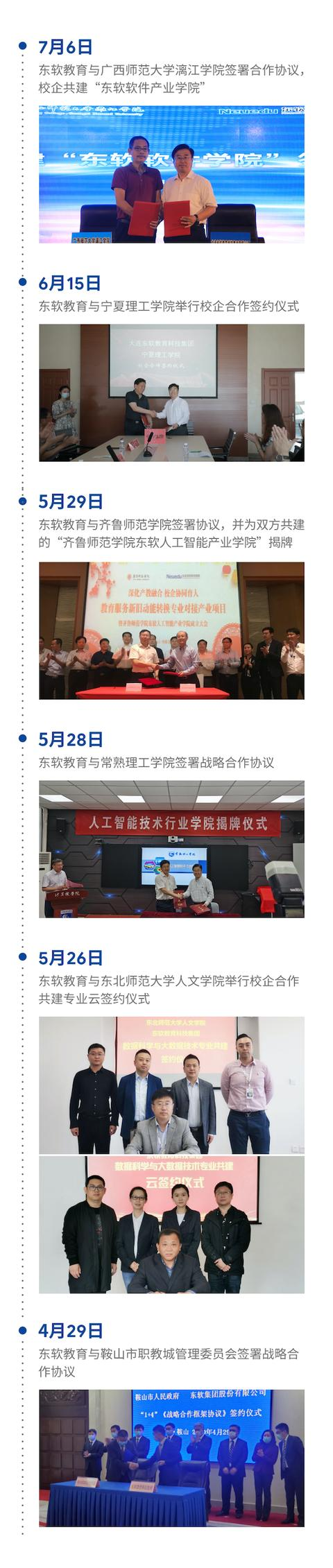 持续响应国家产教融合、协同育人的号召,今年四月份以来球盟会(中国)教育科技集团陆续与鞍山市职教城管理委员会、东北师范大学人文学院、常熟理工学院、齐鲁师范学院、宁夏理工学院、广西师范大学漓江学院等签署合作协议,顺利获得专业共建与产业学院等合作方式,全面开启新年度的IT增值教育服务布局。