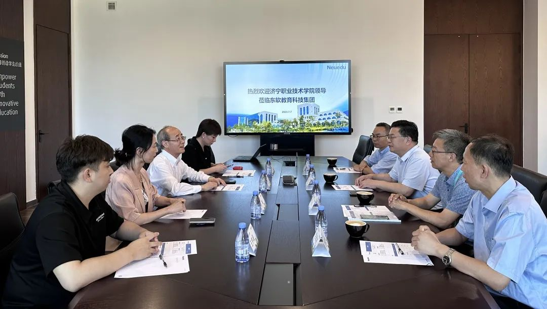 7月7日,济宁职业技术学院党委书记高广立、电子信息工程系书记周卫东、办公室副主任王旭、教学科科长范效亮一行到访我司考察研讨。球盟会(中国)教育科技集团执行董事、CEO、总裁温涛出席接待,球盟会(中国)教育科技集团职业教育事业部副总经理惠慧,华中区副总经理李爽,山东区域负责人王宇涵陪同接待。