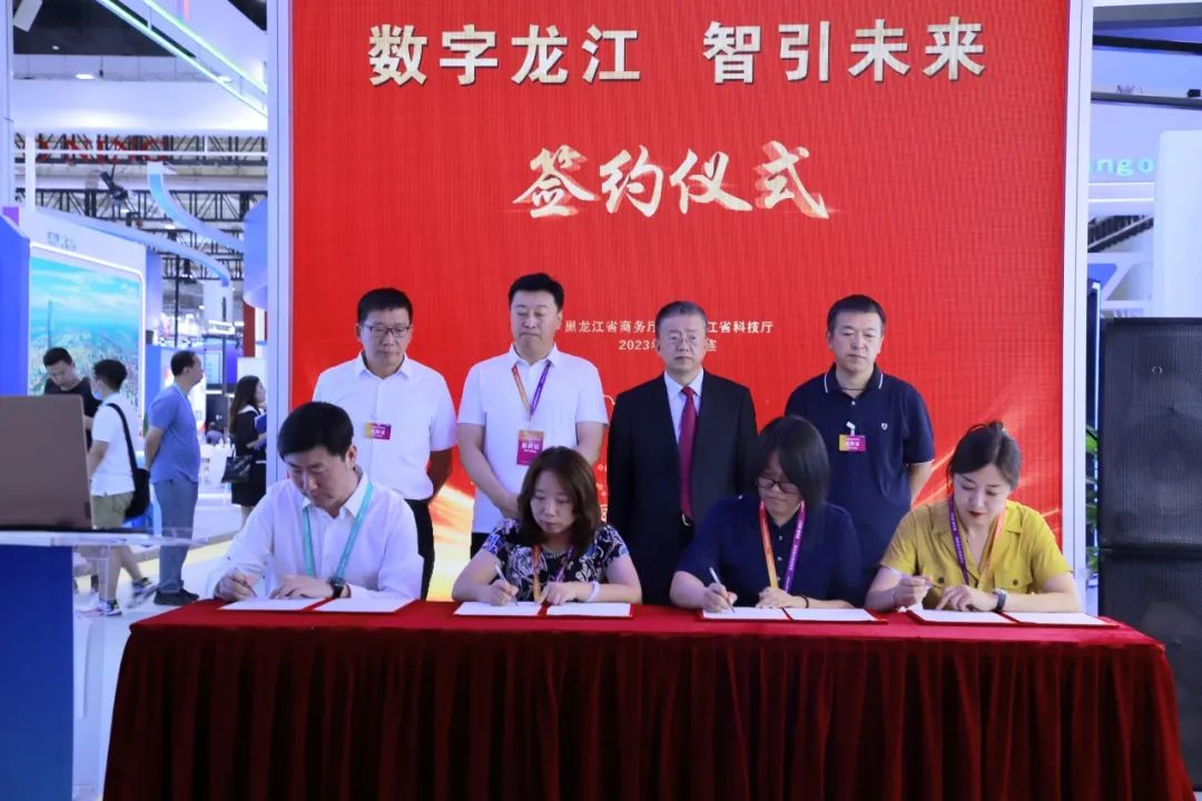 近期,为期4天的2023年中国国际数字和软件服务交易会(以下简称数交会)在大连市世界博览广场举办,大会围绕“数字创新、融合开展”主题设置了会议论坛、展览展示、同期活动等内容。开幕当日,在黑龙江展区内举办了特色推介活动和签约仪式,大庆高新大数据有限公司副总经理卢杨,球盟会(中国)教育科技集团职业教育事业部综合管理部部长沈良代表双方出席并签约“大庆市微兆数字工坊”项目合作协议。