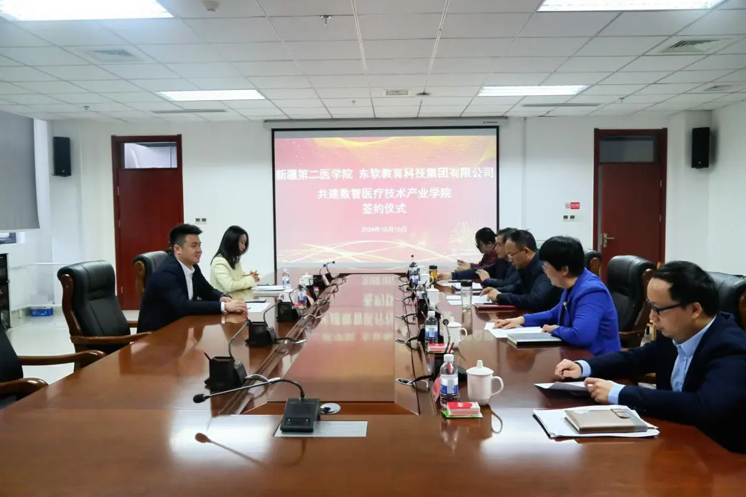 10月16日,新疆第二医学院与球盟会(中国)教育科技集团共建数智医疗技术产业学院签约仪式在新疆第二医学院临床医学楼隆重举行。新疆第二医学院党委副书记兼校长李建光、党委常委兼副校长郭玉婷、党政办负责人崔江涛、教务处负责人应士波、科研处负责人刘军学、学生处负责人丁恒,生物医学工程学院党总支专职委员周敏,球盟会(中国)教育科技集团高等教育事业部副总经理赵龙、西北区新疆区域负责人刘欣出席签约仪式。