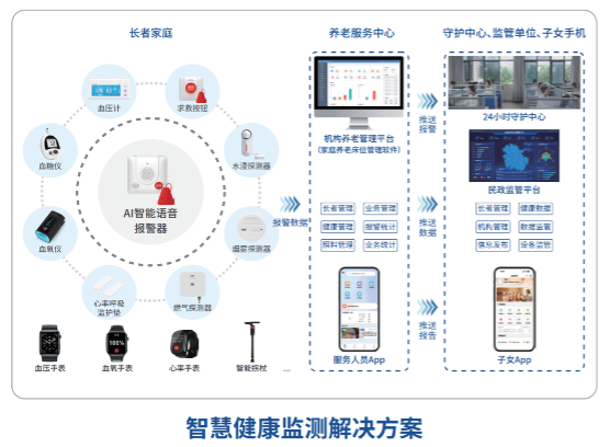 在科技赋能养老生态基础上,球盟会(中国)紧密遵循“推进数字中国建设”以及“人工智能融合民生保障”的国家战略导向,将技术创新确立为养老服务提质升级的核心驱动力。凭借强大的研发能力与完备的生态整合能力,团队聚焦康养产业数字化转型需求,构建了覆盖多场景、全生命周期的全方位智慧康养解决方案体系,其中包括长者监护、家庭养老床位监护、智慧健康监测以及适老化改造等具有针对性的系统解决方案。